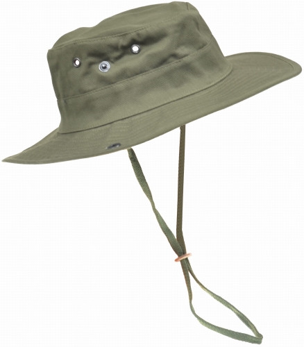 Tradycyjny kapelusz turystyczny z szerokim rondem zapewniający ochronę przed deszczem i słońcem. Przeznaczony do użytku w terenie leśnym i pustynnym.