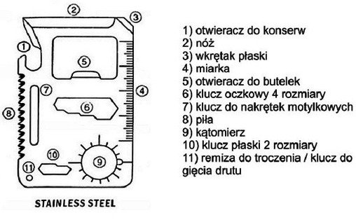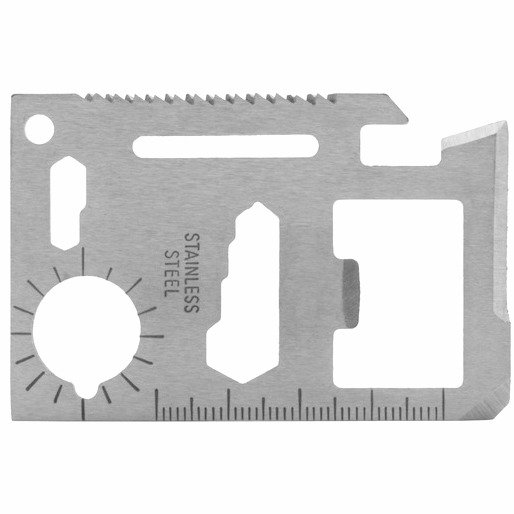 Karta survivalowa przetrwania to niezbędnik na nieoczekiwane sytuacje w formie stalowej karty mieszczącej się w portfelu.