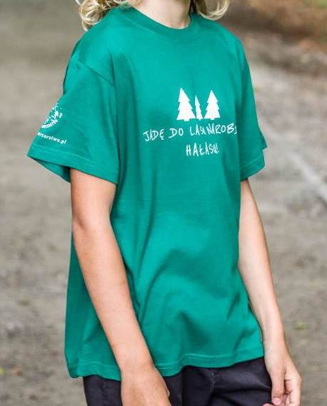 Koszulka JADĘ DO LASU w kolorze zielonym dla każdego harcerza.