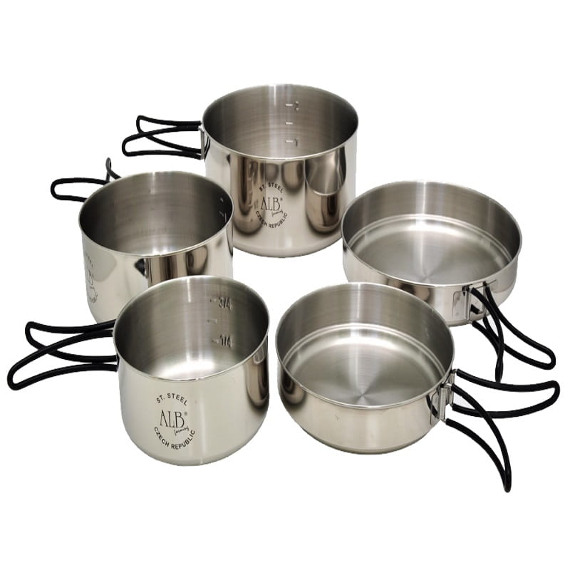 Praktyczny komplet naczyń biwakowych czeskiej firmy ALB. Menażka została wykonana z wysokiej jakości stali nierdzewnej przystosowanej do kontaktu z jedzeniem. Naczynia z pewnością przydadzą się podczas wypraw turystycznych, obozów harcerskich, spływów kajakowych jak i wszędzie tam gdzie nie mamy dostępu do zwykłych naczyń. Menażka w plecaku zajmuje niewiele miejsca.