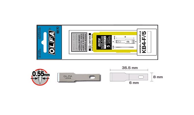 Opakowanie jednostkowe o symbolu: KB4-F/5, zawiera 5szt. ostrzy w plastikowym pudełeczku i woreczku foliowym