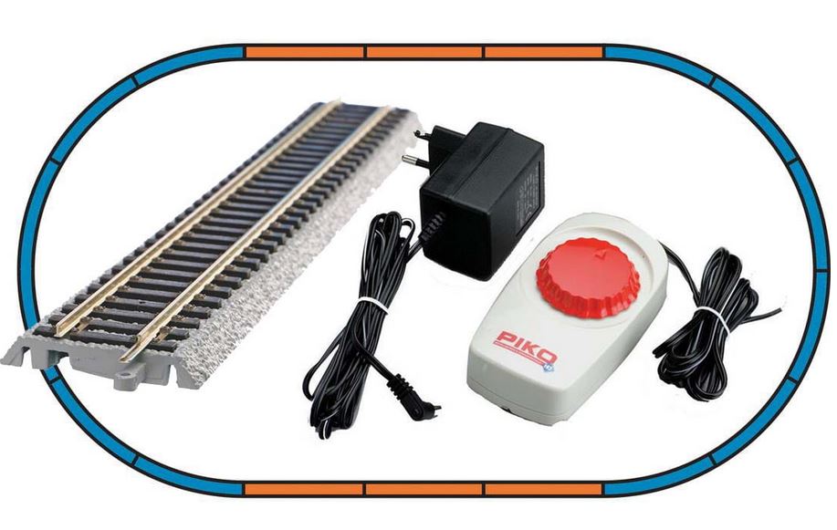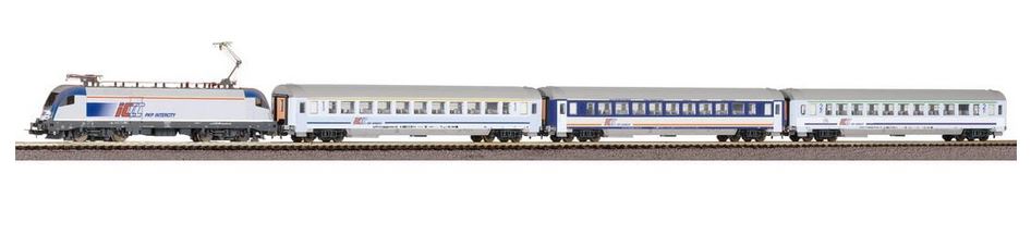 Osobowy zestaw startowy PKP Intercity Husarz + 3 x wagon pasażerski z kompletem sterowania i torami na podsypce.